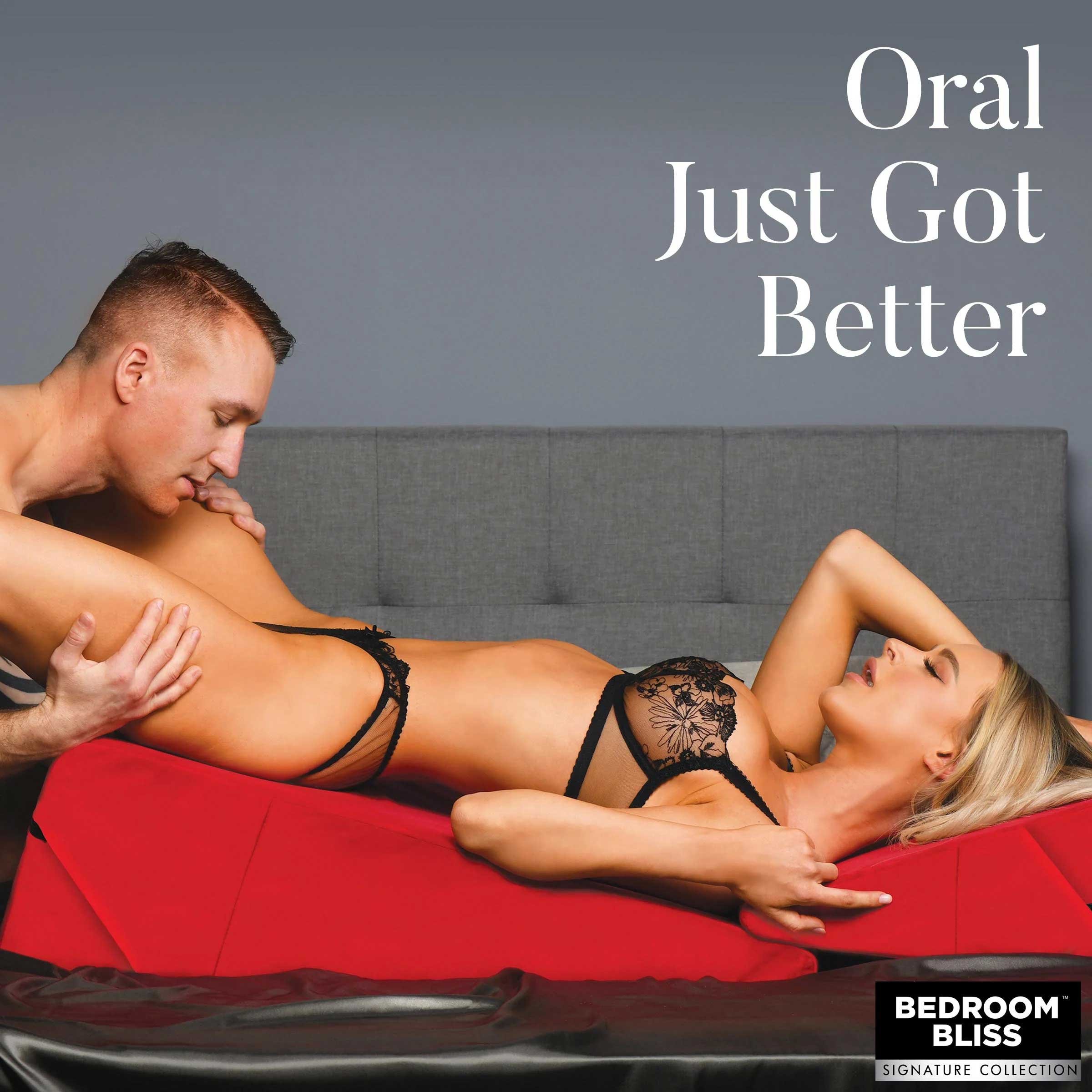 Try out positions until you find the perfect one! These comfortable pillows are versatile and designed to be used in creative and playful ways. You can place the large pillow flat against a bed, couch or the floor. Choose somewhere that is comfortable for you and your partner to play on but that needs more cushion. Lay back against the tilted large wedge and place the small wedge beneath your head for more neck support. You can look your lover in the eyes as you enjoy being face-to-face. Bring the small wedge beneath your hips with the pointed end under your pelvis to support your hips. This can help level the pillows to a more horizontal position. Face down on the large wedge and use the small wedge beneath your hips so your booty is up and your knees are supported for a version of Doggy style pose. You can also drape your body over the large wedge for a different angle and use the small wedge to support your chest or head as you bend forward.