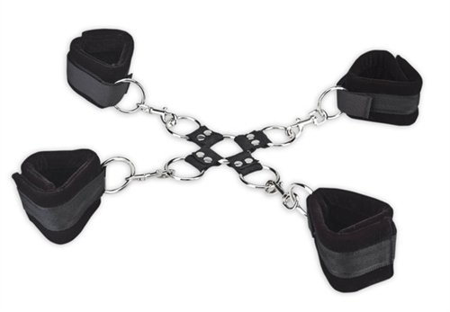Not for the uninitiated this industrial-strength hogtie set lets you completely incapacitate your lover and get down to business. Stainless steel hardware and padded Velcro Cuffs because after all one should be comfortable when hogtied.
