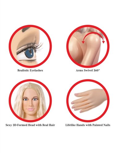 Wanna see whats hiding under this pretty pink bikini... This incredible life size inflatable love doll was meticulously designed with realistic features for a truly lifelike experience. Her sexy 3-D formed head features realistic eyelashes and a luxurious head of real hair thats begging to be pulled. Watch her really come to life with arms that swivel 360 degrees and delightfully painted finger and toenails. Give her firm and perky breasts a squeeze while you enjoy her ultra-lifelike Fanta-Flesh skin pussy and ass that feels even better than the real thing The Fanta-Flesh pussy and ass are removable for easy in-depth cleaning, and can even be enjoyed separately for masturbation. An inflation pump vinyl repair kit and instructions are conveniently included.