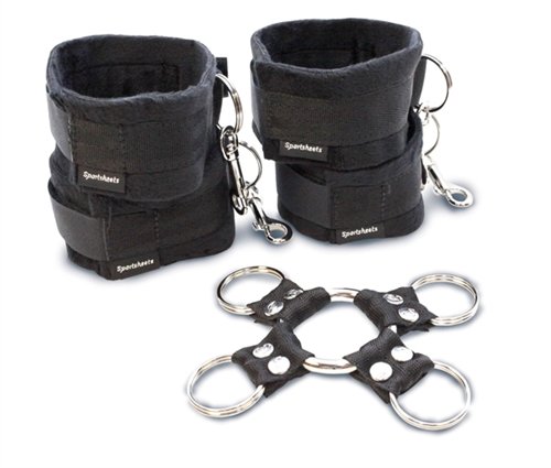 A timeless bondage classic. Four comfortable and adjustable cuffs with Velcro cl osures connect to a heavy-duty metal O-ring in a hog-tie, or even clipped togeth er for limitless positions. Sturdy yet easy to remove, this kit creates quick an d easy ways to restrain your partner.