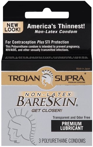 Trojan Supra Bareskin Condoms are ultra thin polyurethane condoms for ultimate sensual pleasure. Recommended for latex sensitive people.