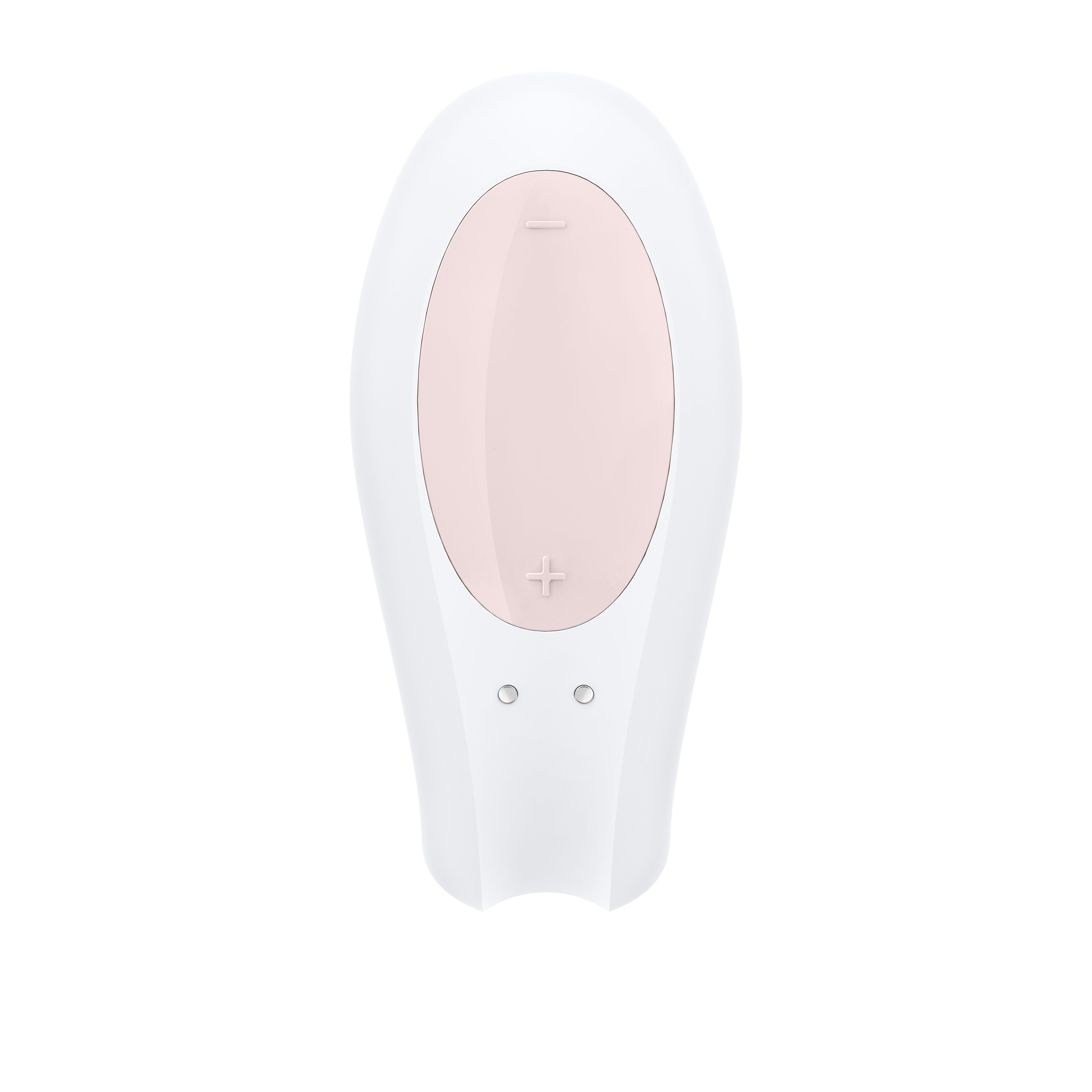 The Satisfyer Double Joy is a couple's vibrator made of body-friendly silicone that invigorates your pillow talk with breathtaking vibrations and passionate rhythms. With its ergonomic and flexible shape, it slips elegantly between you two and catapults you both to cloud 9. Just insert the smaller shaft of the U-shaped vibrator during lovemaking and enjoy the simultaneous clitoris and penis stimulation. When the penis is inserted, it adds a pleasant tightness so the inner shaft of this little gem skillfully stimulatres her G-spot and glans. The two motors vibrate sensually and powerfully in both ends until they bring you both to an ecstatic mutual orgasm.